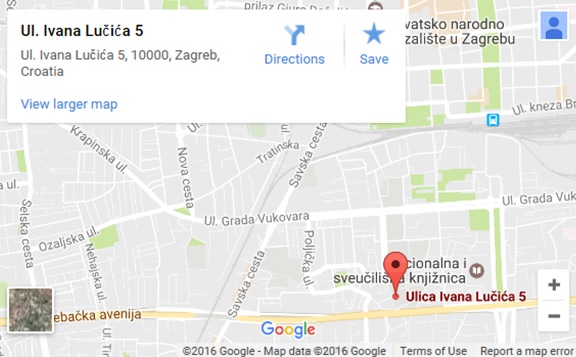 Seminar će se održati u predavaonicama E i G, južne grade (prizemlje nebodera) Fakulteta strojarstva i brodogradnje u ulici Ivana Lučića 5, 10 000 Zagreb. Glavni ulaz je kod slova B.